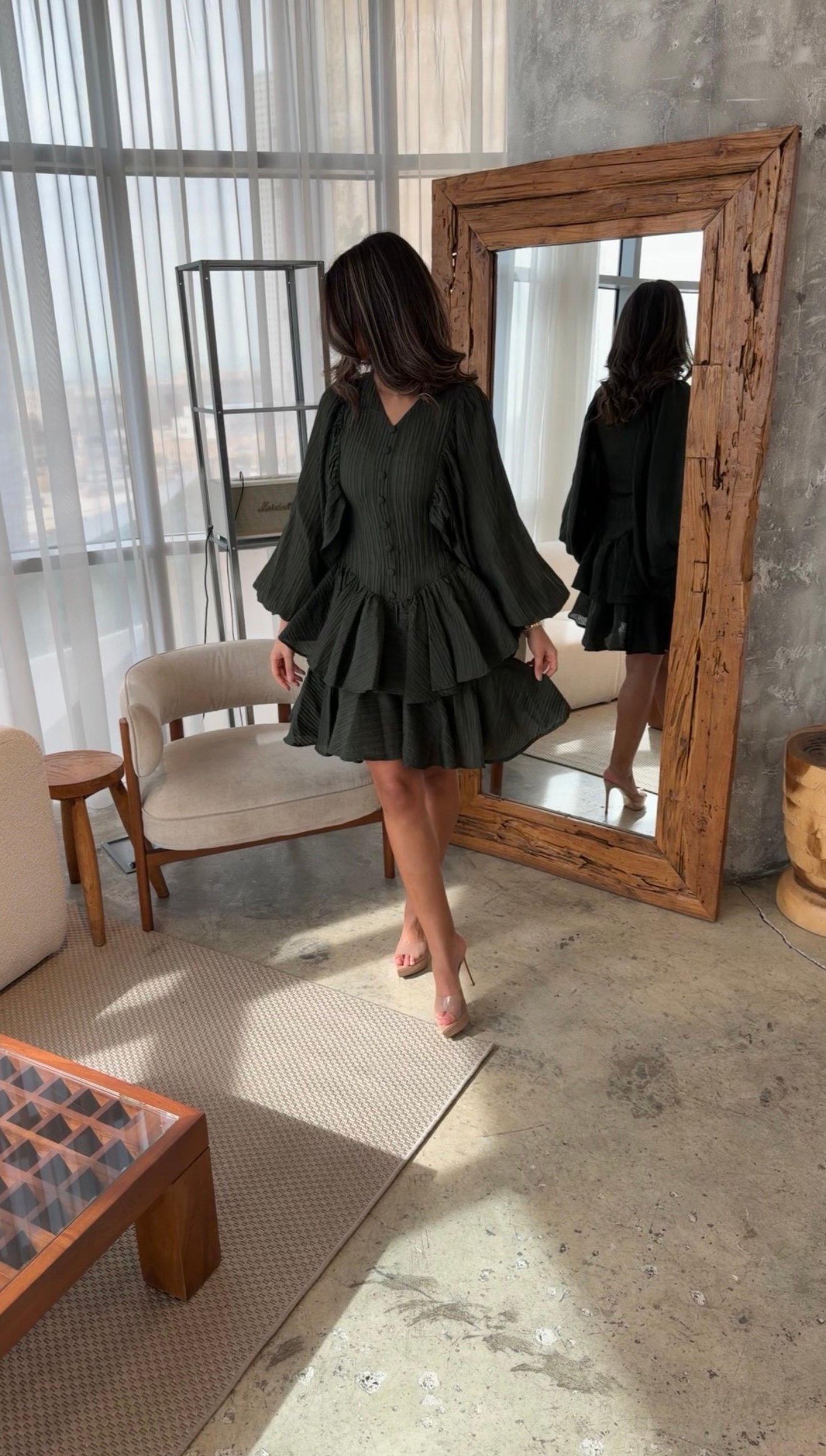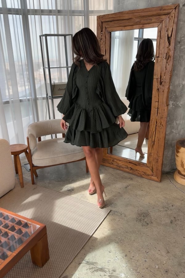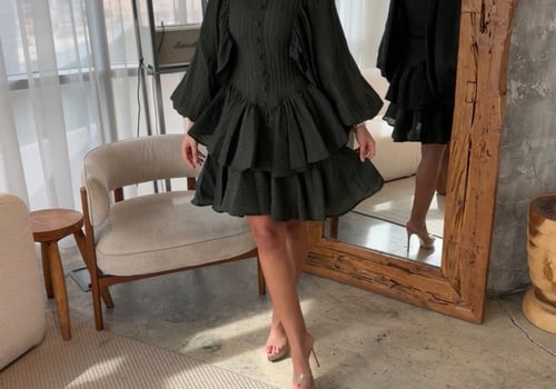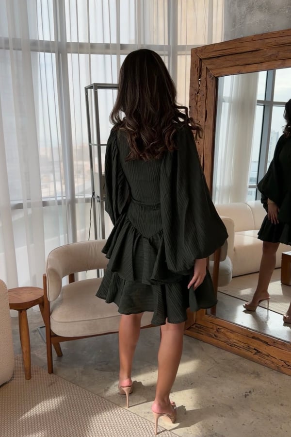 Royal green color Model dress length 39 If no custom length is provided, the item will be delivered in the model's length